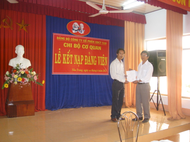 Sáng ngày 08/10/2011, Chi bộ Cơ quan thuộc Đảng bộ Công ty cổ phần Xây dựng công trình 510 đã long trọng tổ chức lễ kết nạp đảng viên cho đoàn viên, quần chúng ưu tú Trần Bảo Tình.